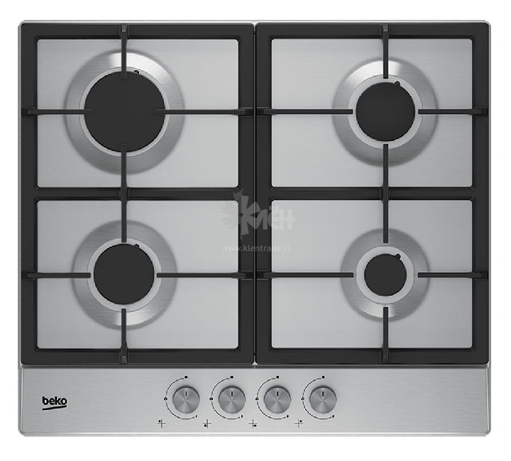 Варочная панель Beko HIAG64225SX с 4 газовыми высокоэффективными конфорками и съемными чугунными решетками. Наличие функции газ-контроля и встроенного в ручки электроподжига.