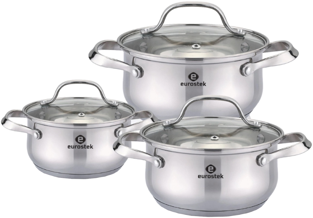 Набор посуды 6пр. Eurostek ES-1215 (2,5л+4,5л+6,5л) подходит для индукции