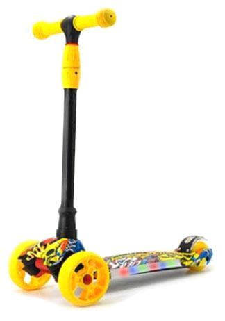 Самокат 3-ёх кол. Black Aqua S00488 складной, руль 65-75см., свет.кол., жёлт./чёрн.