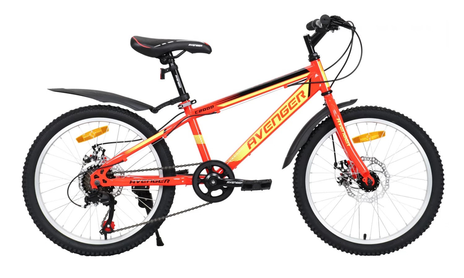 Велосипед 20" AVENGER С200D рост 11", 6ск., красный/жёлтый неон