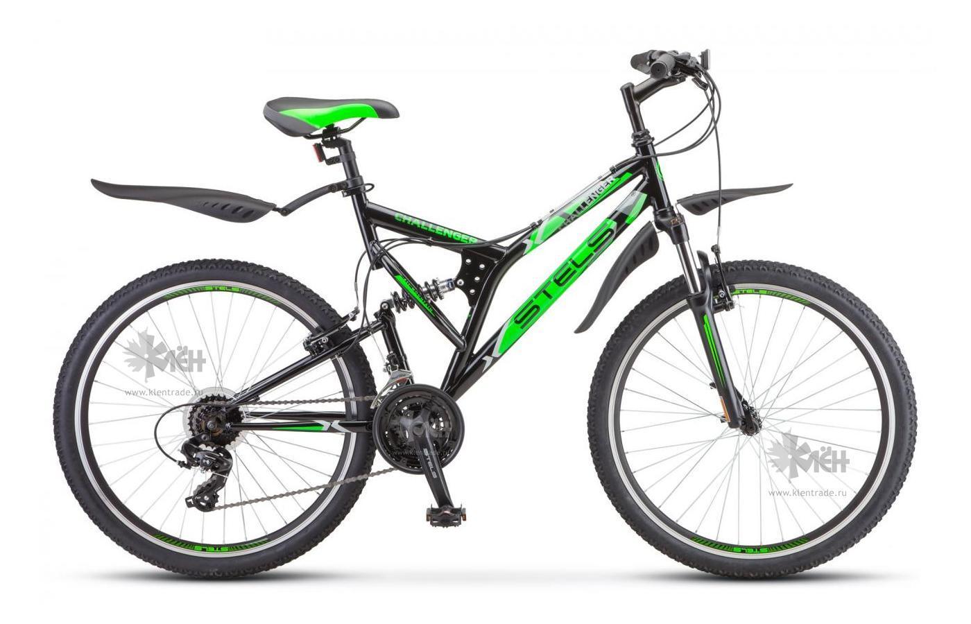 Велосипед 26" STELS Challenger V двухподвес, рост 20", 21ск., чёрный/зелёный