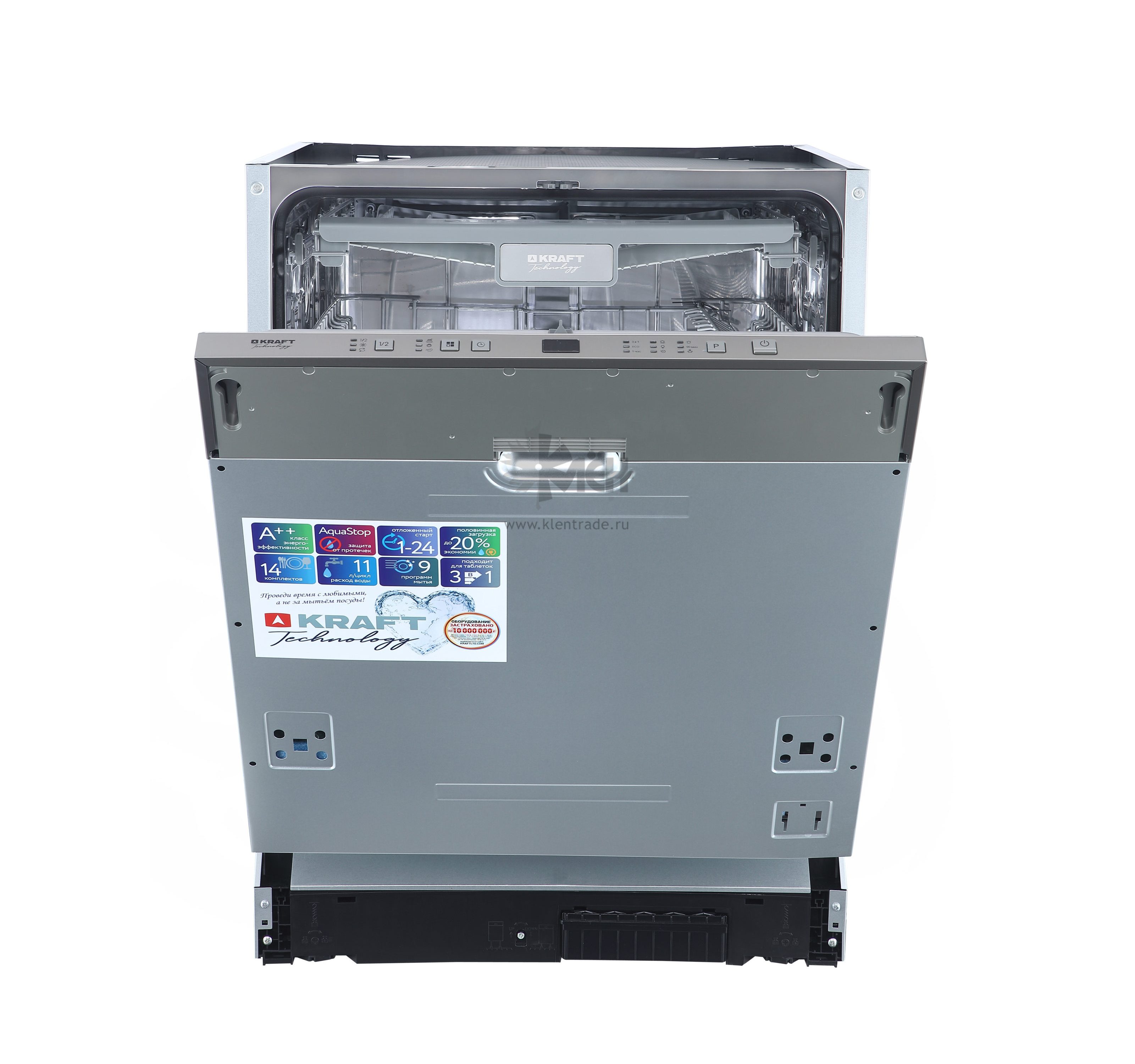 Встраиваемая посудомоечная машина KRAFT TCH-DM609D1405SBI шириной 59,8 см вмещает 14 комплектов посуды.