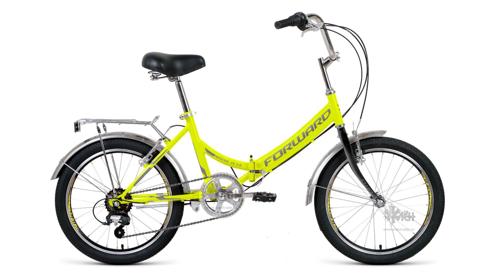 Велосипед 20" FORWARD Arsenal 2.0 складная рама, рост 14", 6ск., ярко-зелёный/серый