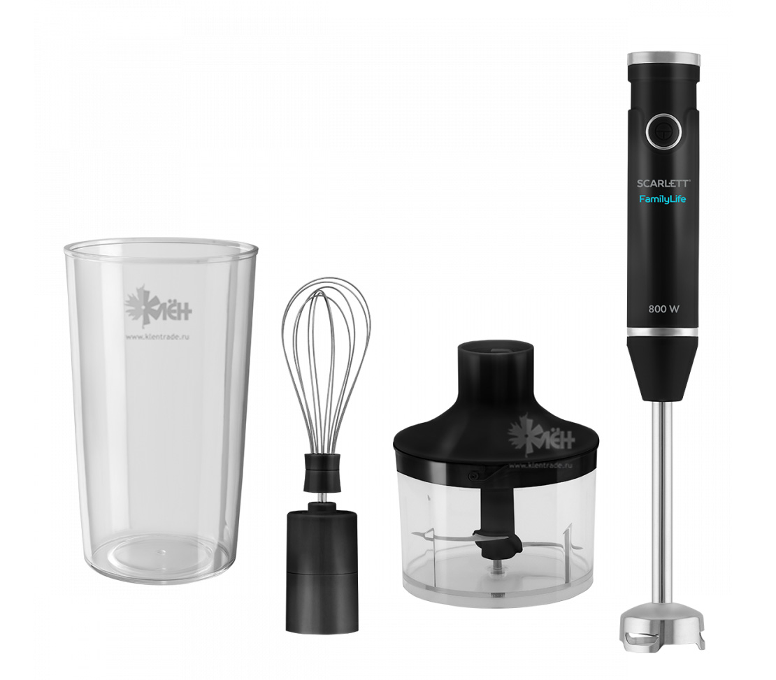 Погружной блендер Scarlett SC-HB42F63 оснащен мощным мотором 800 Вт, к нему прилагается мини-измельчитель и венчик, с помощью которых можно измельчать продукты, готовить тесто, взбивать крем, выполнять другие задачи.