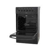 Современная электроплита LERAN ECC3607AT выполнена в чёрном цвете с тонированной дверцей духового отсека. Варочная панель изготовлена из легкого в уходе и прочного материала - стеклокерамики, оснащена четырьмя конфорками. Передняя панель плиты оснащена шестью поворотными переключателями для механического управления духовкой и варочной панелью. Переключатель и ручка дверцы сделаны из термостойкого пластика, что не позволяет им нагреваться.