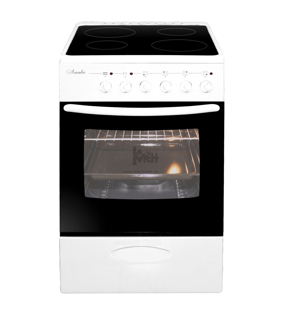 Электрическая стеклокерамическая плита Лысьва EF 4004 MK представлена в белом цвете, прекрасно дополнит кухонный интерьер.