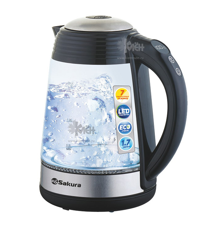 SAKURA SA-2729 DBK это ультрасовременный электрический чайник. Прибор имеет LED-дисплей, 6 вариантов подсветки, а также ряд преимуществ на ряду с другими моделями в своем сегменте.