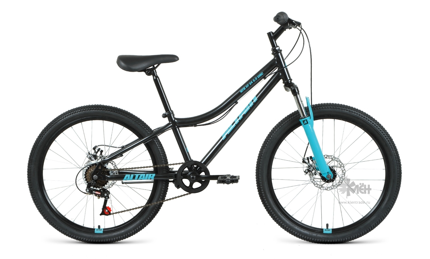 Велосипед 24" ALTAIR MTB HT 2.0 disc рост 12", 6ск., чёрный/бирюзовый