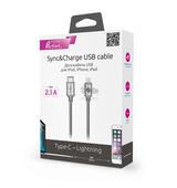 Дата-кабель USB Type C-lightning 1.0м. Partner серый 038387