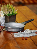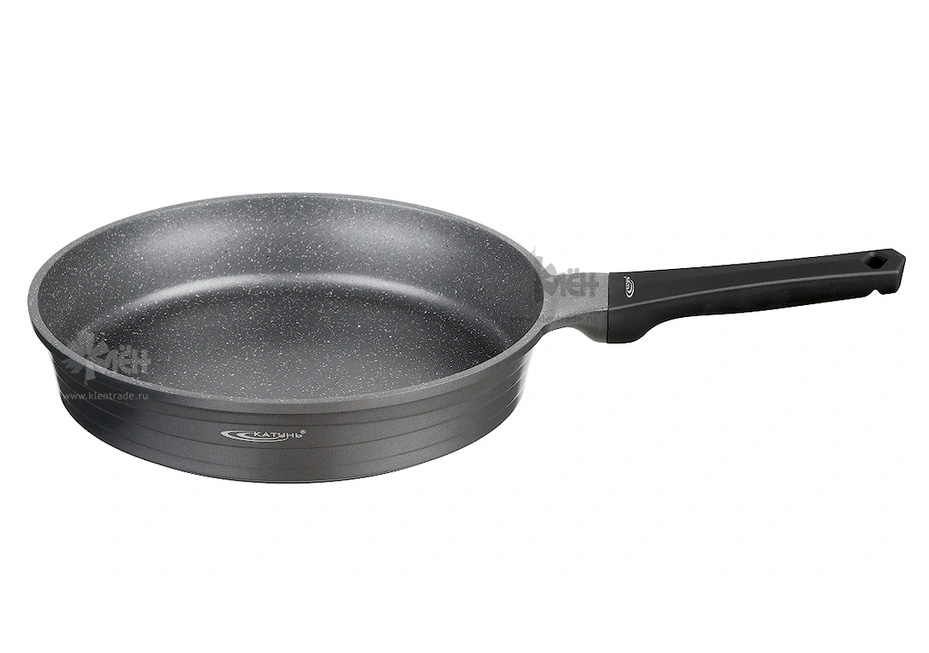 Сковорода КАТУНЬ КТ-АЛ02-С24 серии "Графит" диаметром 24 см выполнена из литого алюминия, что исключает деформацию изделия, обеспечивает прочность, долговечность и равномерное распределение тепла.