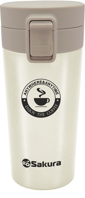 Термокружка 0,38л. SAKURA TM-01-380WG молочный, нерж.сталь, пластик, ситечко, кнопка