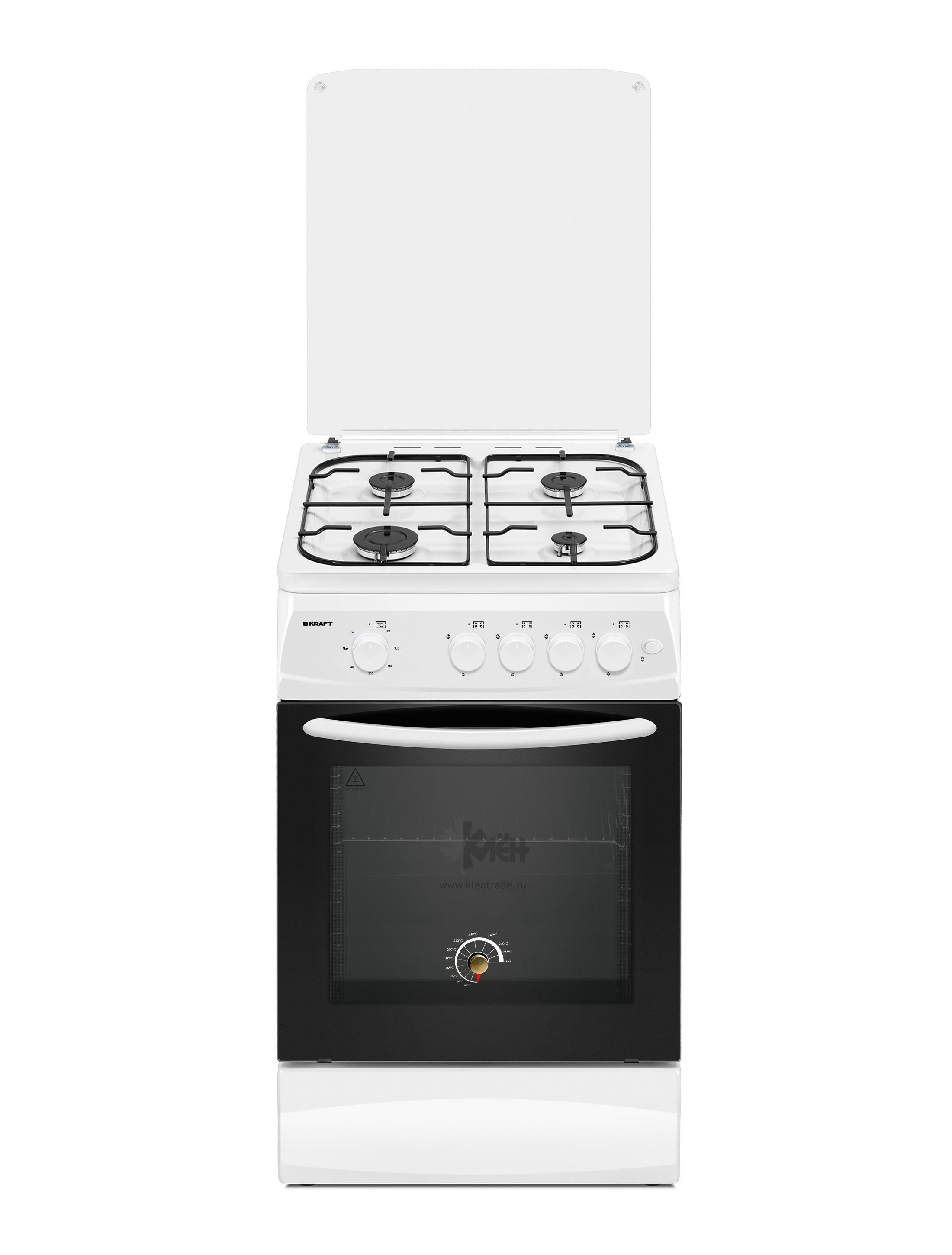 Плита KRAFT KF-FSK5401AGW оснащена газовой духовкой вместительностью 58 л. Термоуказатель на дверце духовки позволит выставить нужную температуру для приготовления.
