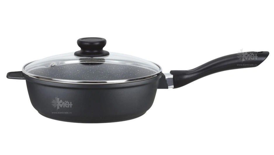 Сковорода WINNER WR-8129, диаметром 28 см, выполнена из литого алюминия, что исключает деформацию изделия, обеспечивает прочность, долговечность и равномерное распределение тепла. Популярный вид мраморного покрытия усиливает антипригарные свойства посуды.