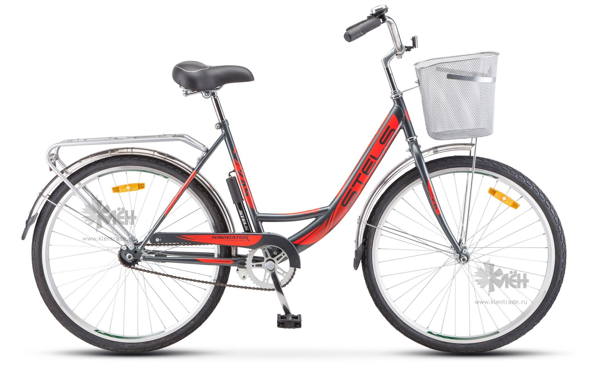 Велосипед 26" STELS Navigator 245 женск.рама, +корзина, серый/красный