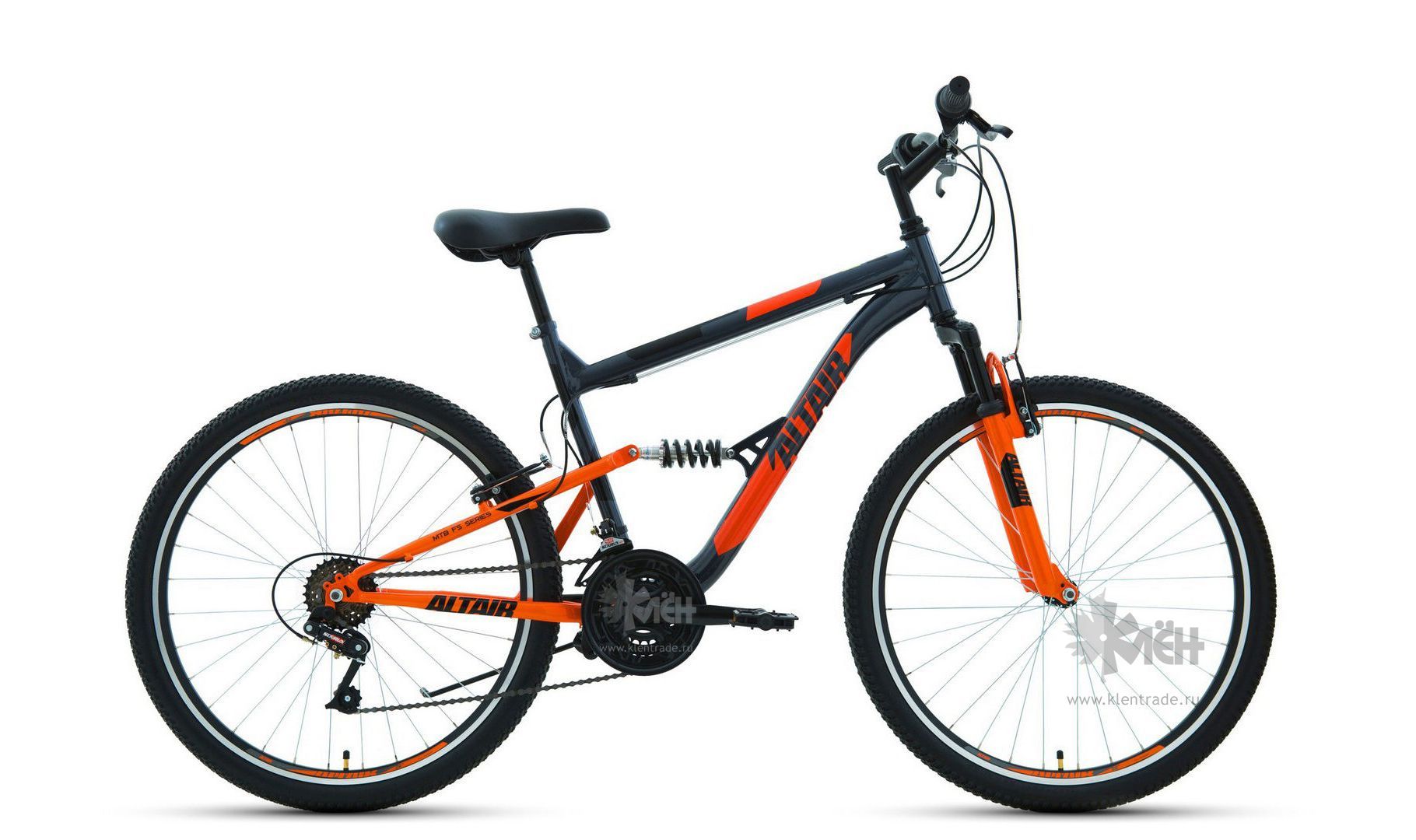 Велосипед 26" ALTAIR MTB FS 1.0 двухподвес, рост 18", 18ск., тёмно-серый/оранжевый