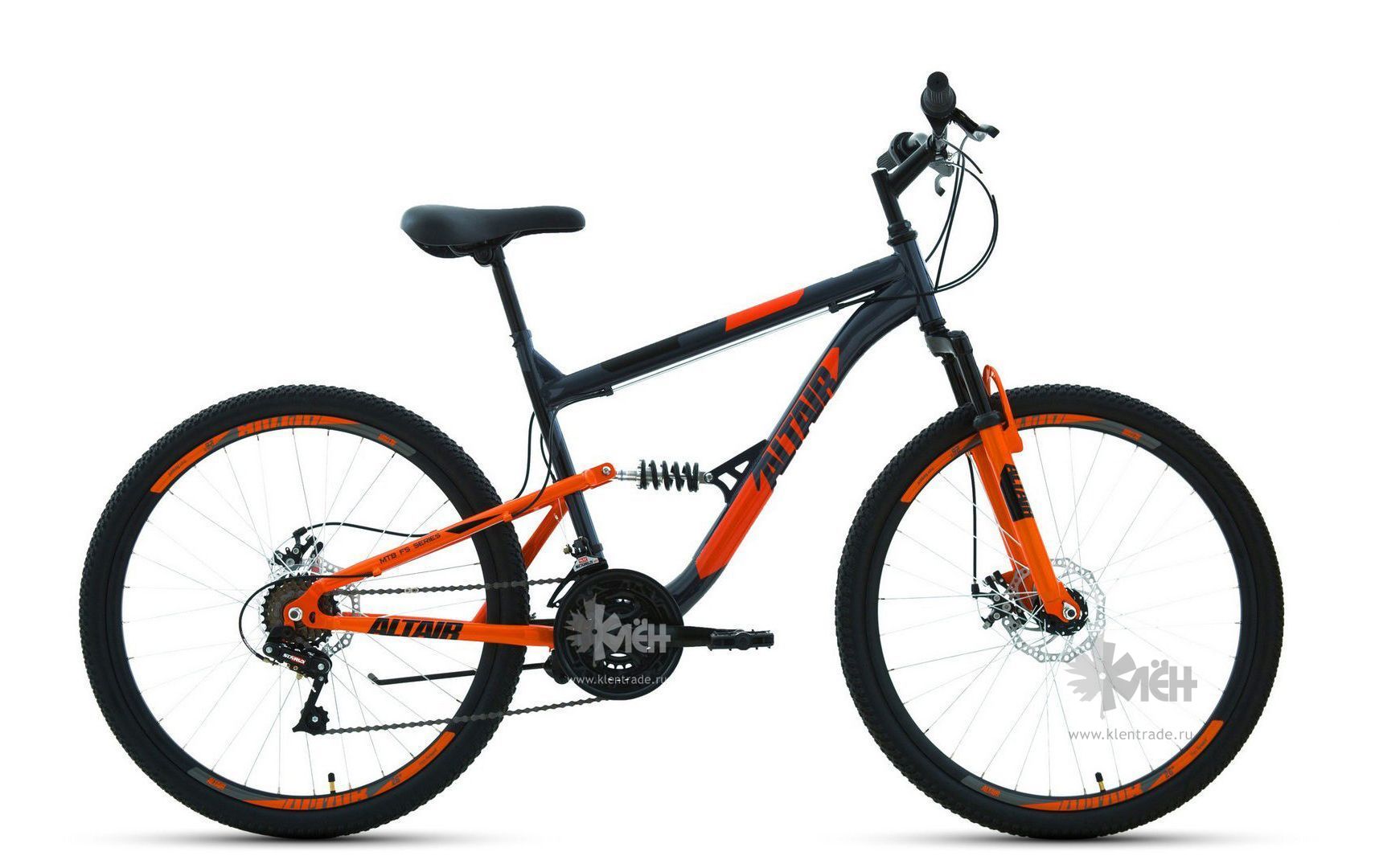 Велосипед 26" ALTAIR MTB FS 2.0 disc двухподвес, рост 16", 18ск., т.серый/оранжевый