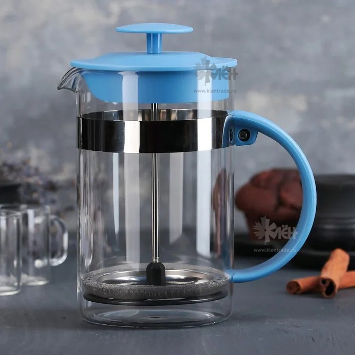 Чайник заварочный френч-пресс 0,8л. Доляна 1075452 пластик, голубой