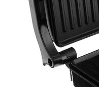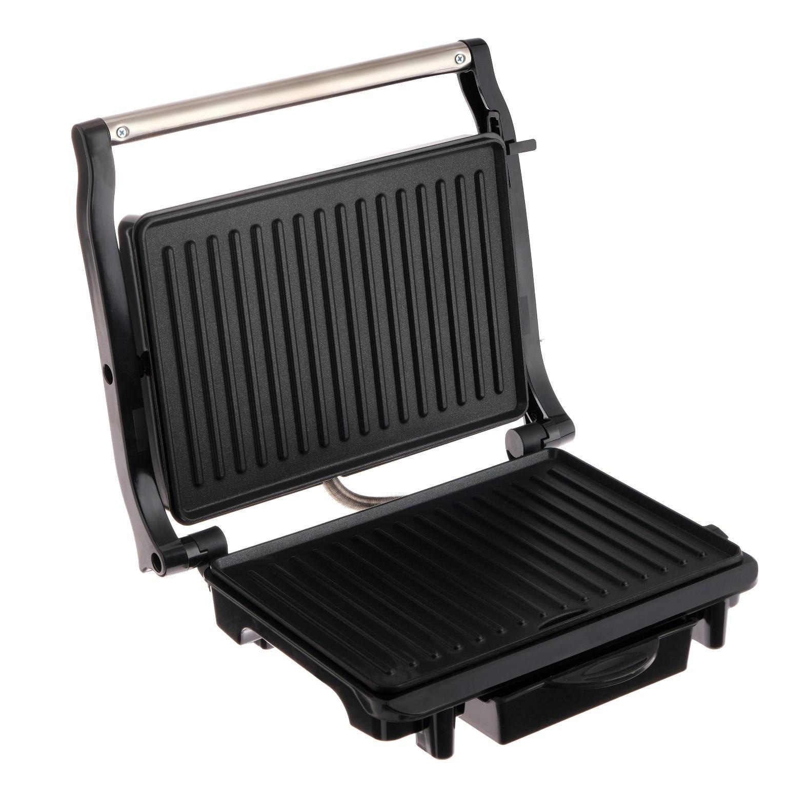 На корпусе расположен LED-индикатор работы. Быстрый нагрев, автоматический контроль температуры. Размер пластин - 254х178 мм. Отделка корпуса выполнена из высококачественной нержавеющей стали. Ручка в процессе готовки не нагревается. Нескользящие и устойчивые ножки для комфортного и безопасного использования.