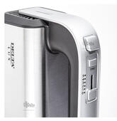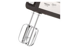 В комплект с прибором входят два венчика для взбивания и два крюка для вымешивания теста, изготовленные из высококачественной нержавеющей стали: насадки легко отделяются от корпуса нажатием специальной кнопки.