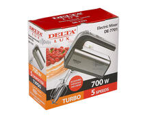 Если вы любите баловать близких тортами, пирожными, десертами и пирогами, обратите внимание на ручной миксер DELTA LUX DE-7701 с максимальной мощностью 700 Вт.