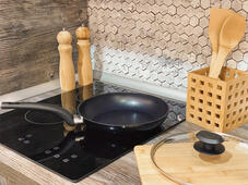 Бакелитовая ручка не нагревается в процессе приготовления пищи. Петля для подвешивания позволяет экономить место для хранения на кухне. Индукционное дно. Сковорода может использоваться на всех типах плит, включая индукционные.