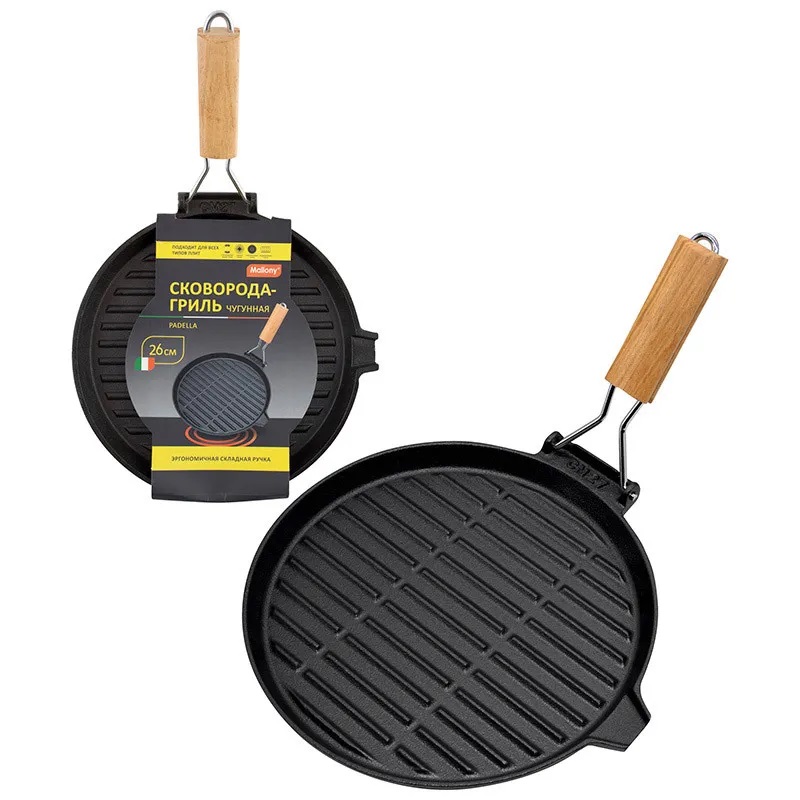 Сковорода-гриль чугунная d26см. Mallony 985059 lдеревянн.складн.ручка