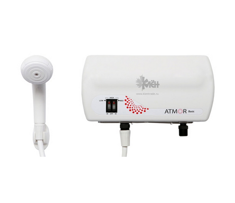 Водонагреватель Ariston Atmor BASIC 5 KW Shower используется для нагрева проточной воды, вода нагревается сразу при проходе через него. Номинальная мощность водонагревателя – 5 кВт, водонагреватель подключается к розетке.