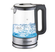 Электрический чайник SAKURA SA-2726SBK прост в управлении и долговечен в использовании. Корпус изготовлен из термостойкого стекла и пластика. Беспроводное соединение позволяет вращать чайник на подставке на 360°.