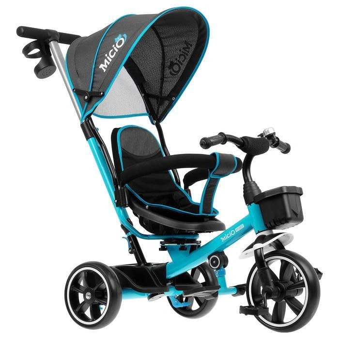 Велосипед 3-х кол. Micio Veloce крыша-капюшон, родит.вело-руч., бирюз. 4700943