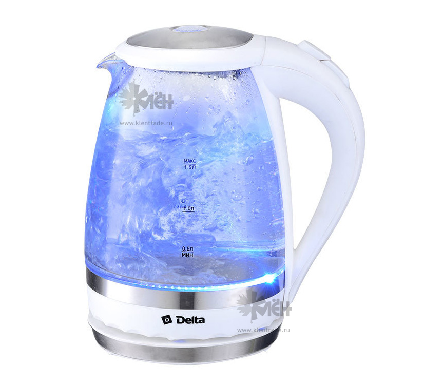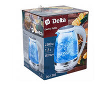 Чайник DELTA DL-1202 1,5л., 2200Вт. стекло/бел