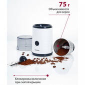 - объем емкости для зерен 75 г;