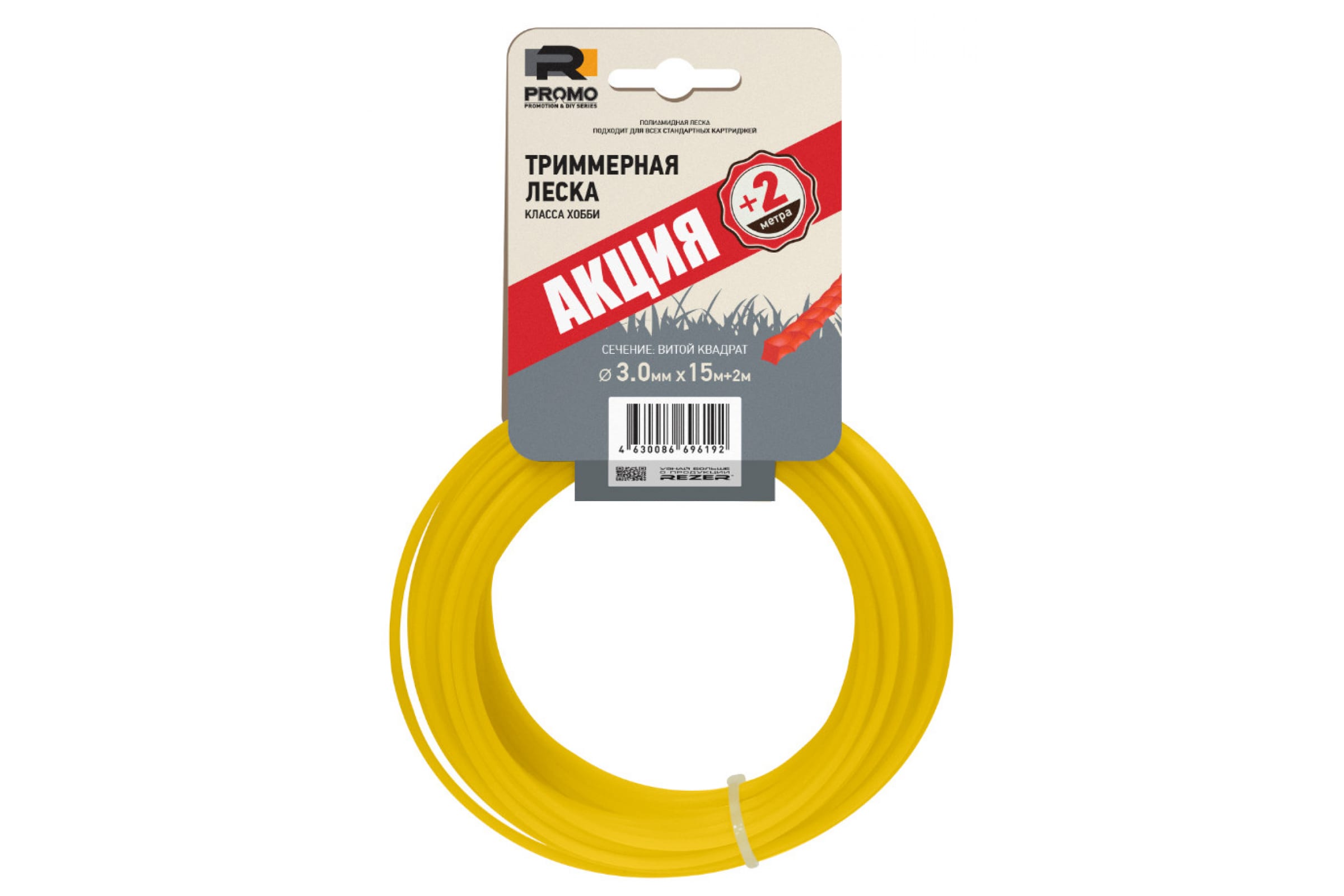 Леска д/триммера Rezer PROMO 3,0мм*15м+2м Квадрат витой