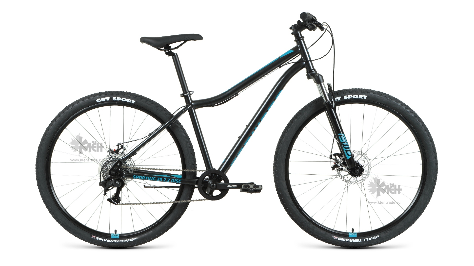 Велосипед 29" FORWARD Sporting 2.2 disc рост 19", 8ск., чёрный/бирюзовый