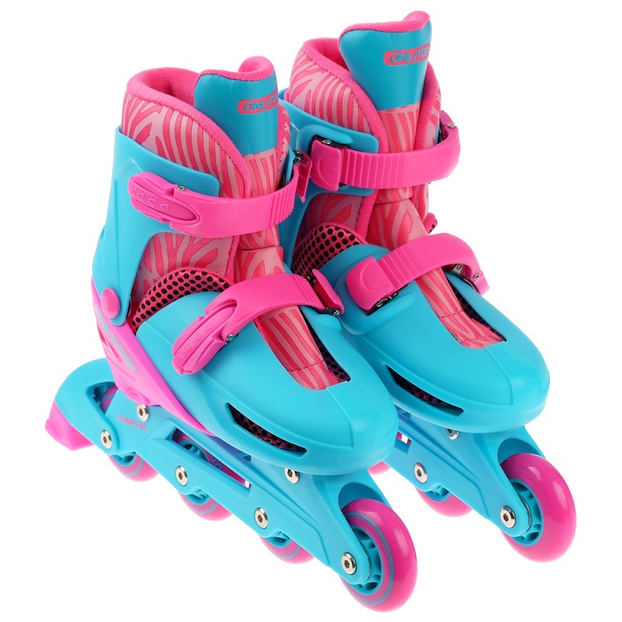 Роликовые коньки 34-37 р. ONLITOP раздвижн., пласт.рама, кол. PVC, розов./бирюзов. 4605214