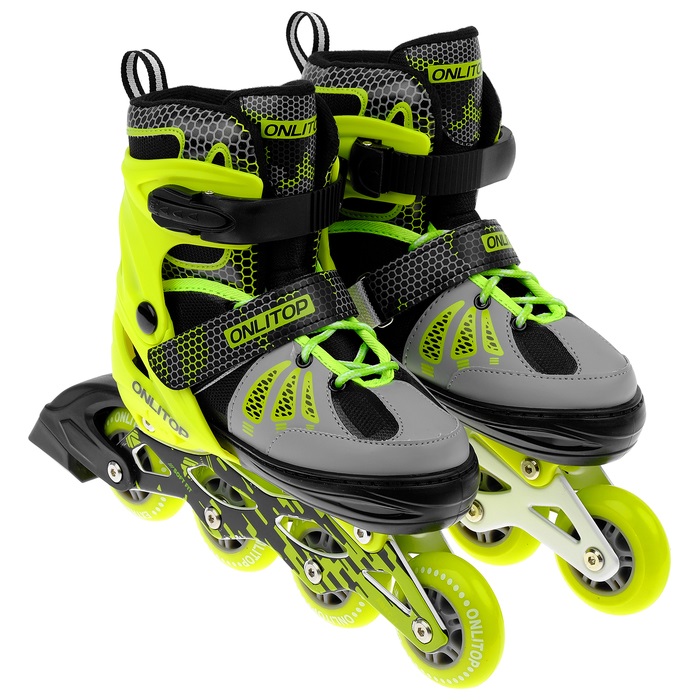 Роликовые коньки 38-41р. ONLITOP раздвижн., алюм.рама, кол. PU, салатов./серый 4605228