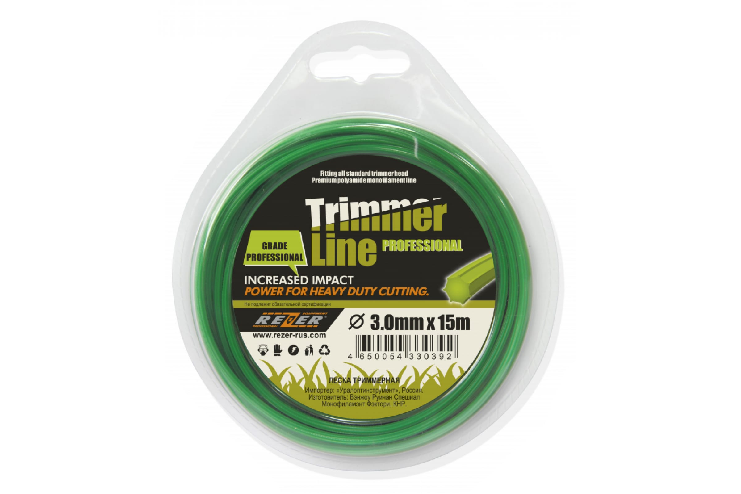 Леска д/триммера Rezer PROFESSIONAL 3,0мм*15м СЕМИУГОЛЬНИК