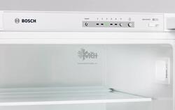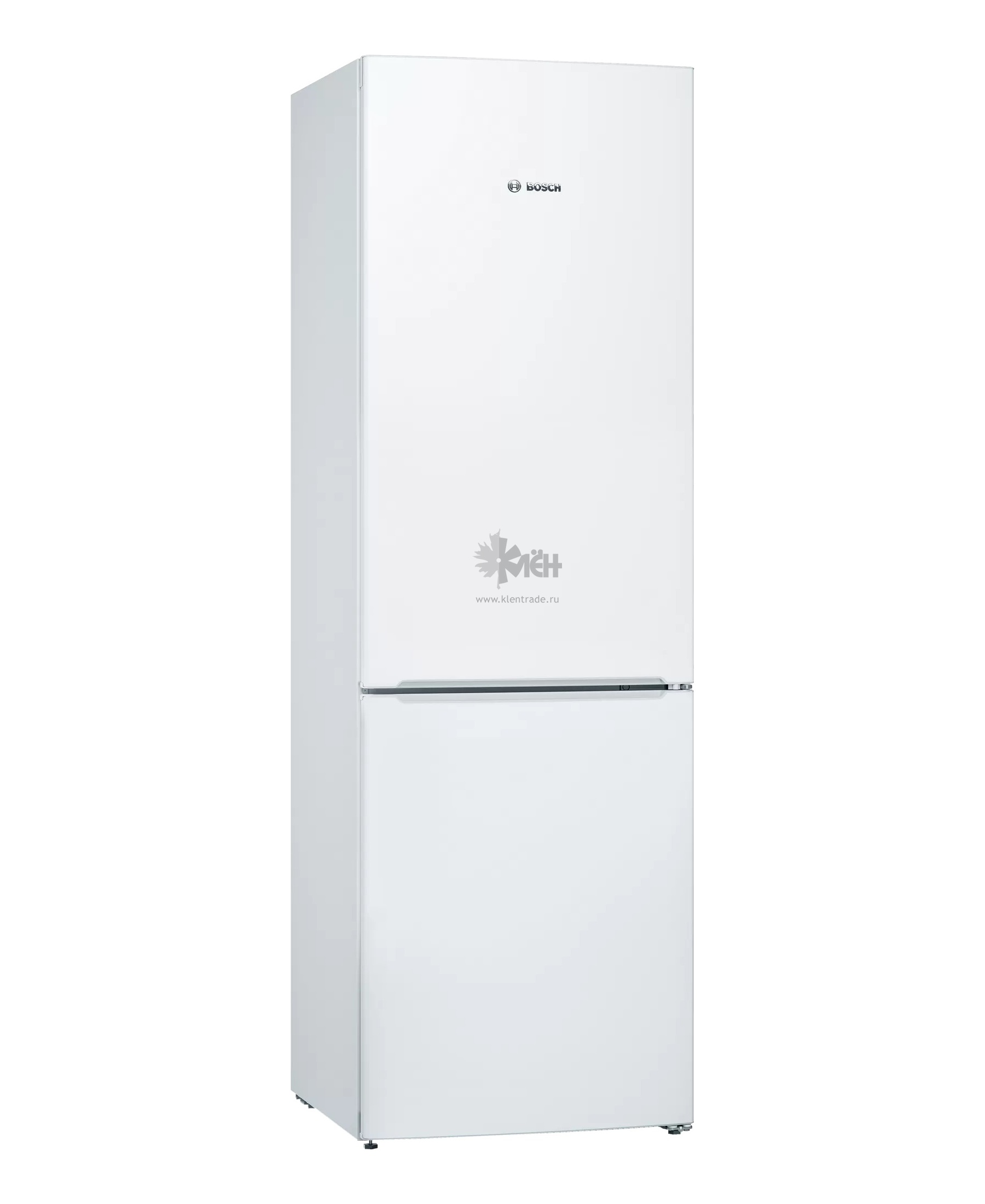 Двухкамерный холодильник BOSCH KGV 36NW1AR с морозильником, расположенным в нижней части. Модель выполнена в классическом белом цвете. Габариты устройства: