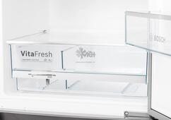 Продукты в ярком свете. Светодиодная подсветка привносит в холодильник Bosch VitaFresh совершенно новую концепцию освещения, гарантируя равномерное освещение всего пространства без бликов. Светодиодные лампы потребляют меньше электроэнергии, чем обычные лампы накаливания, и служат в течение всего срока службы прибора.