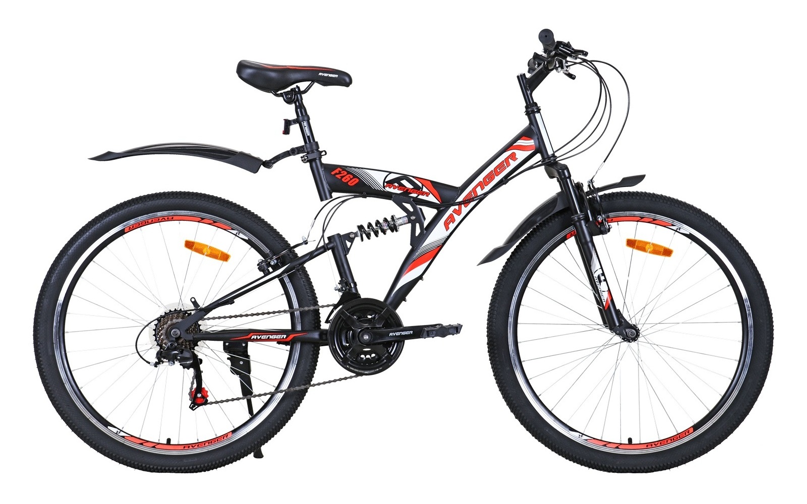 Велосипед 26" AVENGER F260 двухподвес, рост 18", 21ск., чёрный/оранжевый неон