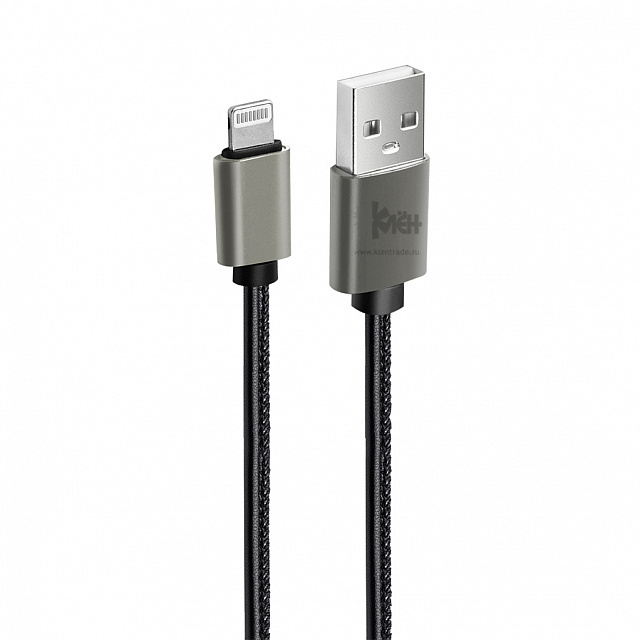 Дата-кабель USB 2.0-8pin 1.2м. 2,1А, оплетка из кожи PU, OLMIO 041654