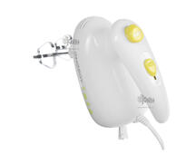 Используйте входящие в комплект крюки для замешивания идеального жидкого или густого теста. Компактный и легкий прибор комфортно держать на весу даже длительное время.