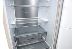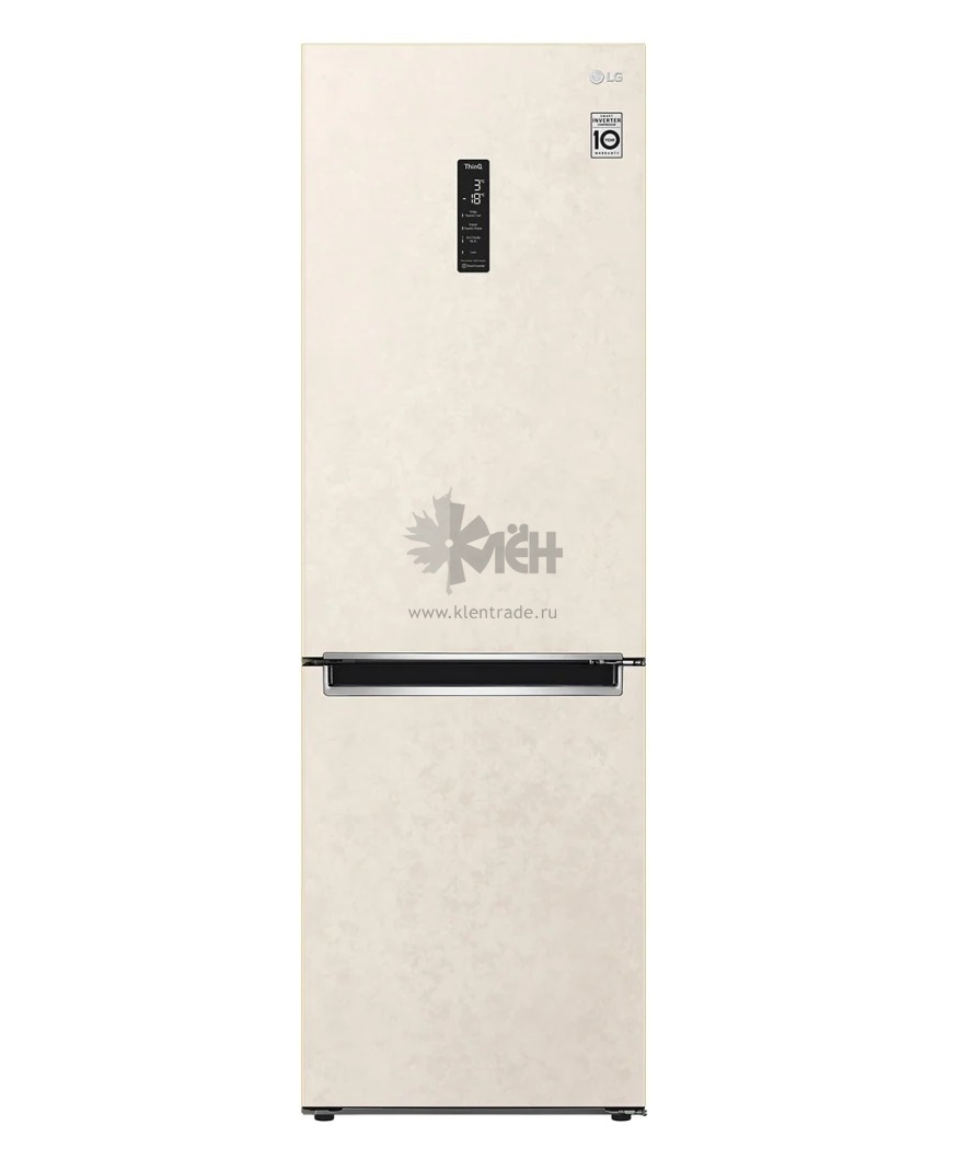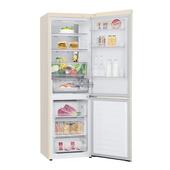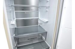 Двухкамерный холодильник LG GA-B459MEQM с морозильником, расположенным в нижней части. Холодильник выполнен в стильном бежевом корпусе.