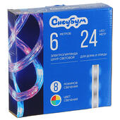 СНОУ БУМ Шнур LED 6м, 24LED/m, 2 дорожки, 8 режимов, мультицвет, 220В