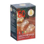 СНОУ БУМ Электрогирлянда Кружевная лента из медных нитей росы, 60LED, 6м, пост. свеч, шампань, 3хАА