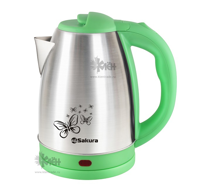 Электрический чайник SAKURA SA-2135GS имеет мощность 1800Вт , благодаря чему обеспечивается быстрое закипание воды. Прибор выполнен в серебристом корпусе из нержавеющей стали с применением высококачественного пластика зелёного цвета.