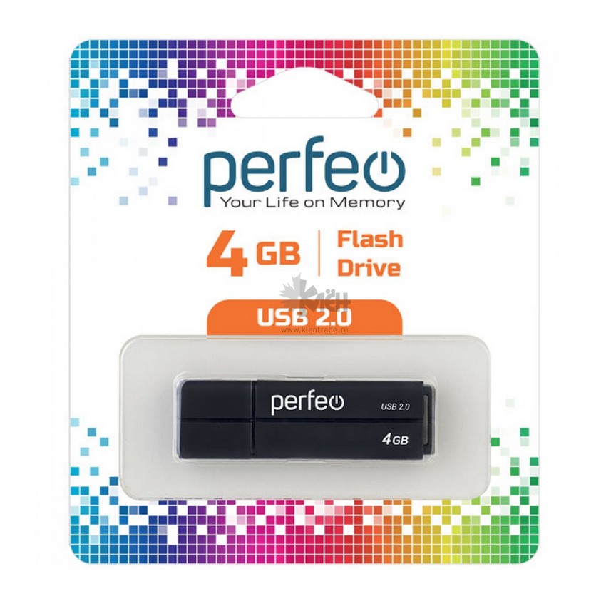 USB накопитель Perfeo C01G2 с колпачком, модель C01G2 объемом памяти 4GB, чёрного цвета имеет компактный размер.