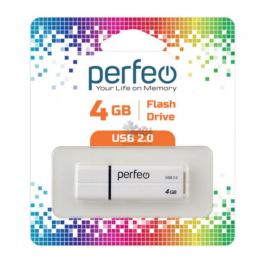 USB накопитель Perfeo C01G2 с колпачком, модель C01G2 объемом памяти 4GB, белого цвета имеет компактный размер.