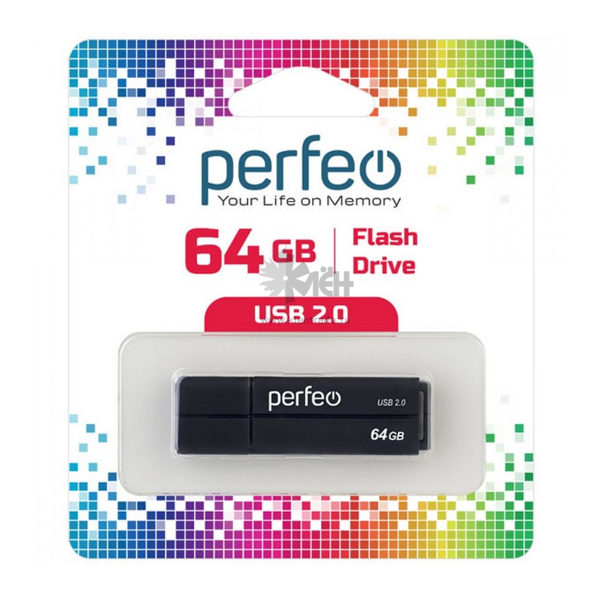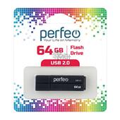 USB накопитель Perfeo C01G2 с колпачком, модель объёмом памяти 64GB, чёрного цвета имеет компактный размер.