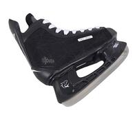 Ударопрочный пластиковый мыс устойчив к порезам и защищает от последствий случайных ударов клюшкой или шайбой по ботинку. Язык из толстого войлока предотвращает передавливание ступни шнурками. Лезвие из нержавеющей стали легко поддается заточке.