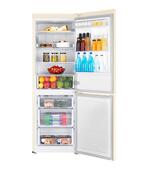Двухкамерный бежевый холодильник SAMSUNG RB30A32N0EL с морозильником, расположенным в нижней части.